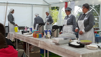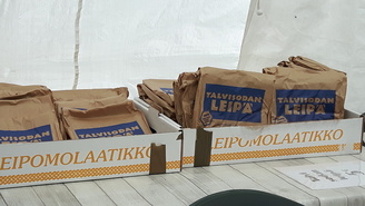 ![]() Talvisodan leipääkin oli tarjolla Lottakanttinissa (Ruokamessut 2018) | ![]() Lottakanttiinin teltan pystytys ja purku vaatii oman vapaaehtoisen kökkäporukan (Ruokamessut 2018) |